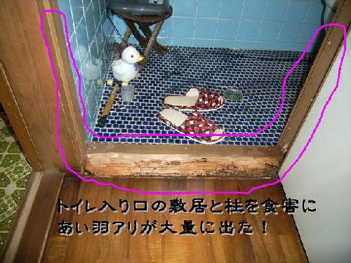 HOME > シロアリ被害の写真館:バックナンバー > トイレ敷居のシロアリ駆除 写真