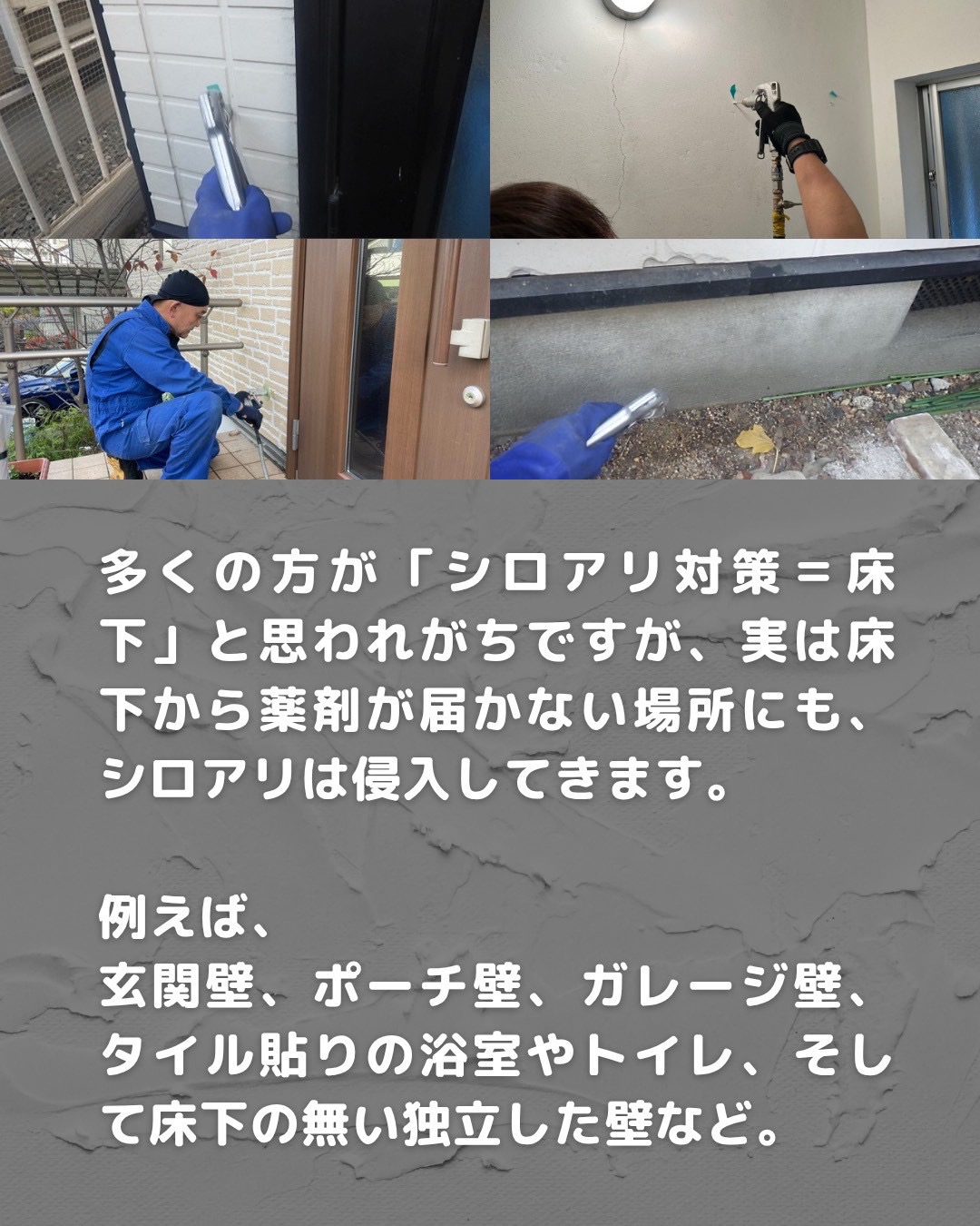 多くの方が「シロアリ対策=床下」と思われがちですが、実は床下から薬剤が届かない場所にも、シロアリは侵入してきます。