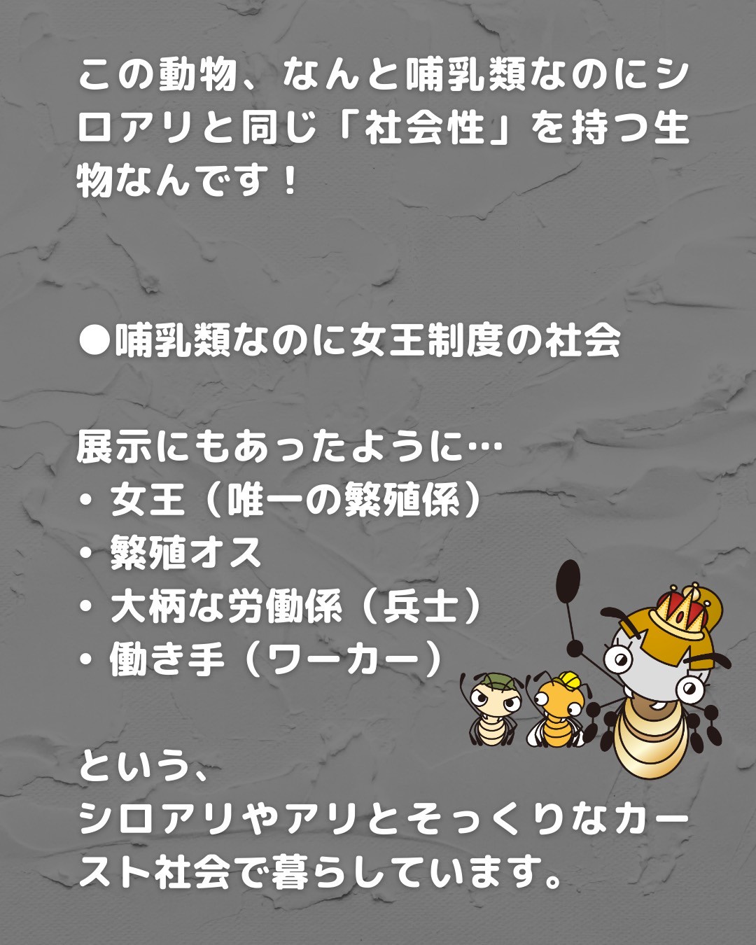 「真社会性をもつ珍しい哺乳類」という展示がありました。