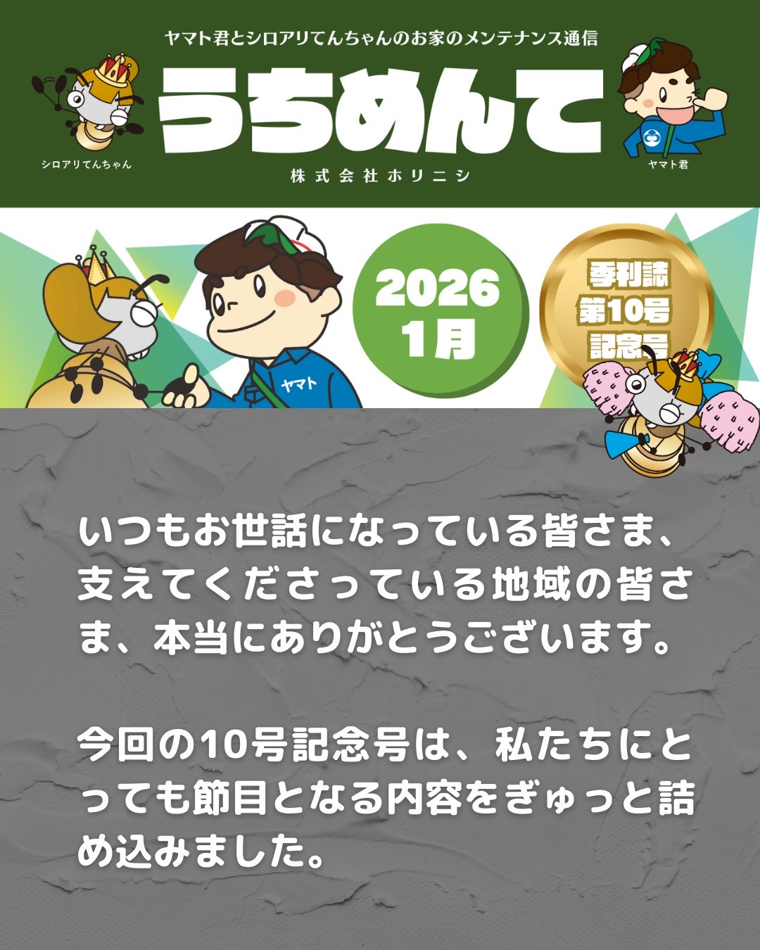株式会社ホリニシの季刊誌 「うちめんて」2026年1月号(第10号記念号)を発行しました!