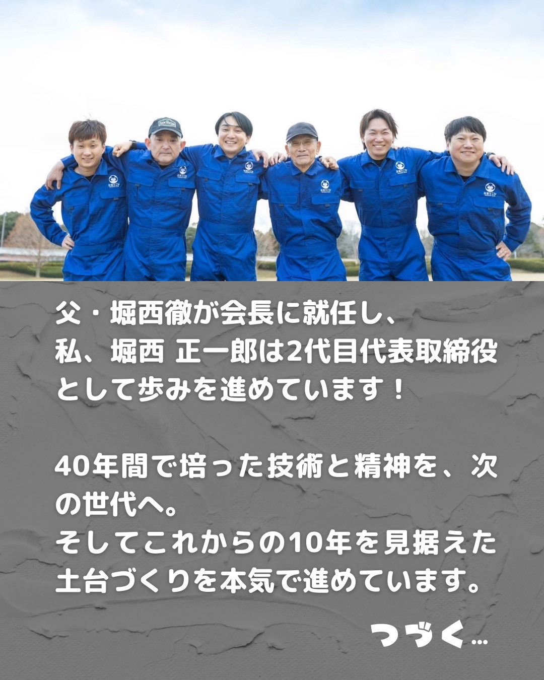 私、堀西 正一郎は2代目代表取締役として歩みを進めています!